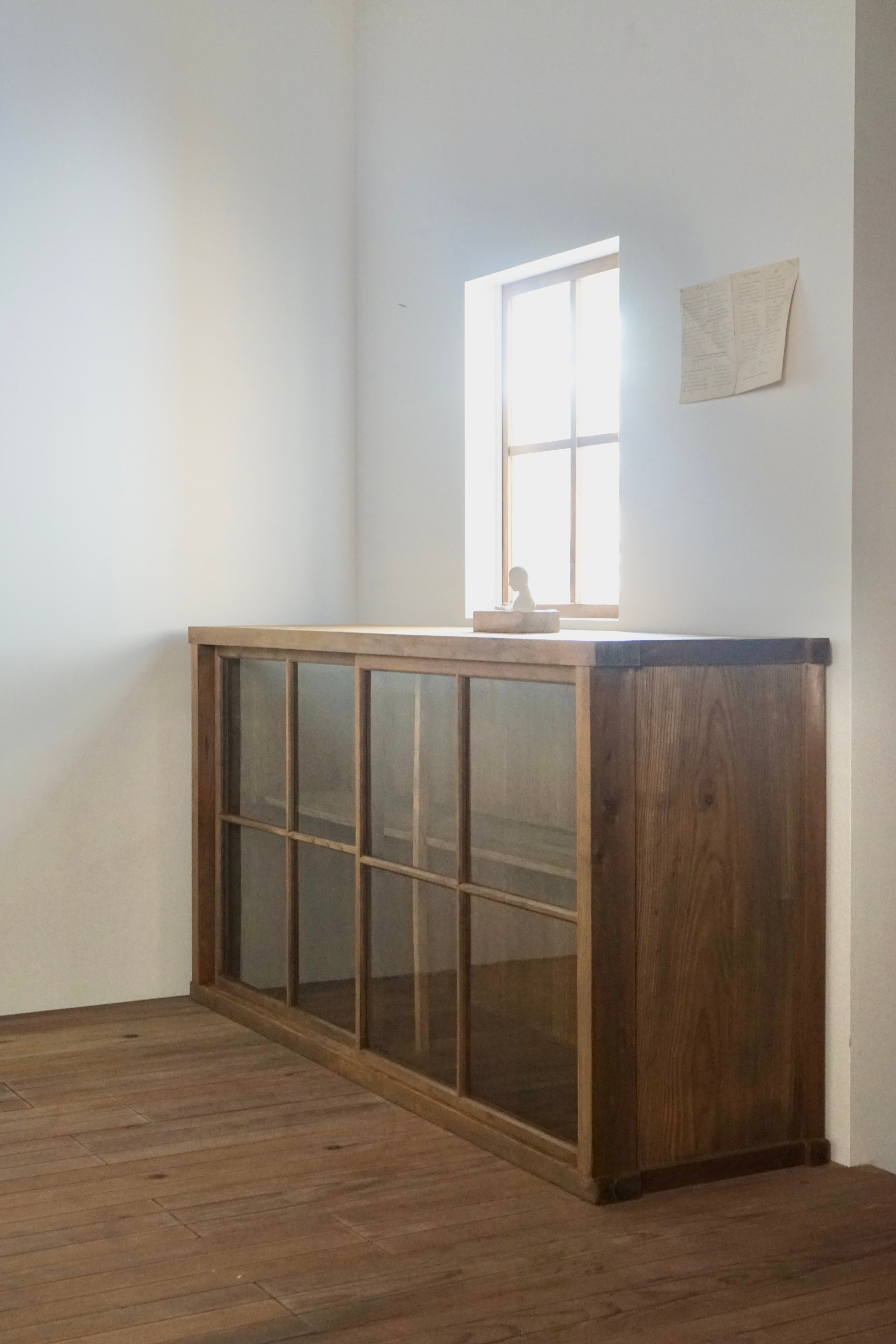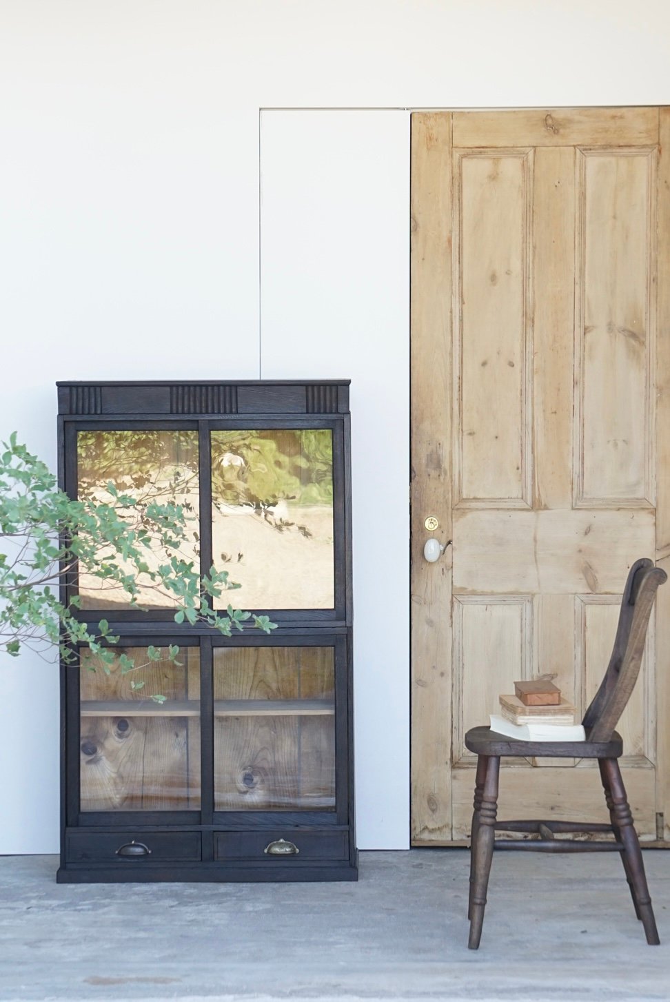 濃茶色のガラス戸棚